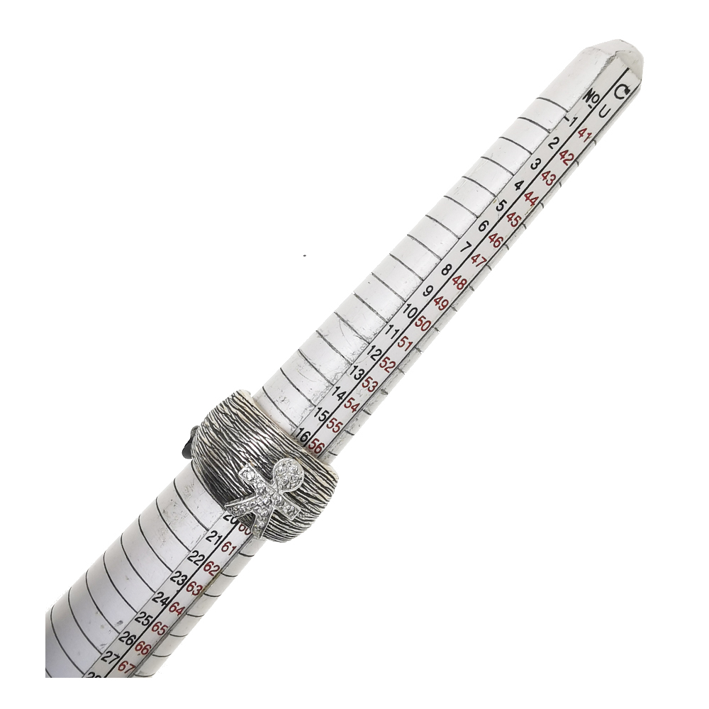 Anel exclusivo de prata (0,925) rodeada fosca com cravação de pedras zircónias brancas e negras.