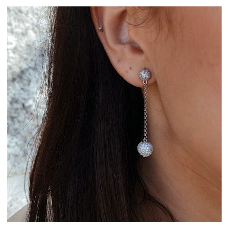 Brincos em prata de lei, com bolas cheias de zircónias.